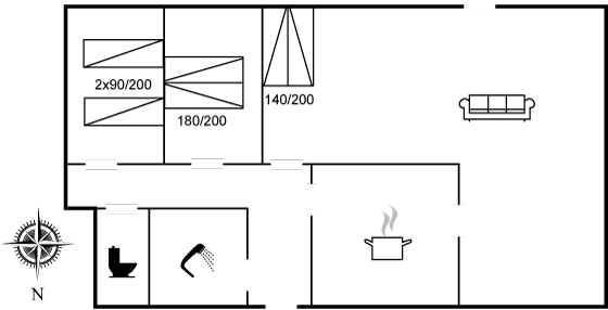 | 1400 til vand | 4 pers. | 100 m2 | 2 soverum |