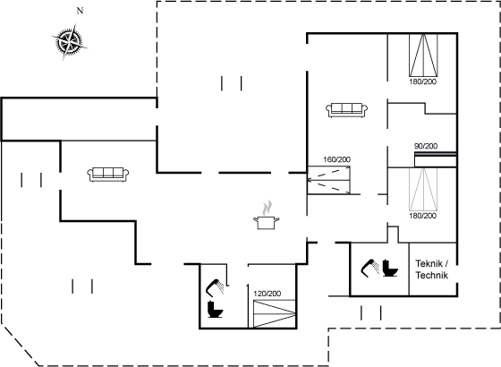 Huset er indrettet med en lys stue med store vinduespartier og direkte adgang til den store, vestvendte terrasse, et moderne køkken med spiseplads og udgang til den sydvendte terrasse samt et rum med plads til hygge og spil. Husets sovepladser fordeler sig på fire gode værelser, der findes to badeværelser og en rummelig entré.