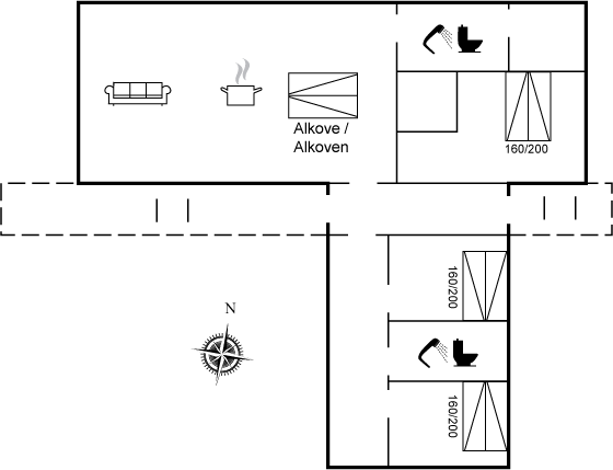 Husets indretning gør det velegnet til til en ferie med familien eller til flere par, som ønsker at tilbringe en fælles ferie i dejlige omgivelser.
