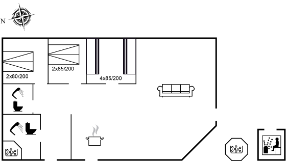 For den ultimative afslapning tænder I det udendørs spabad og sauna. Her kan I lade jer omslutte af varmt vand og nyde fuldstændig ro – om aftenen med frit udsyn til den klare stjernehimmel. Udenfor finder I også en udendørsbruser, perfekt til at skylle saltvand og sand af efter en dukkert i Vesterhavet – eller til et frisk morgenbad under åben himmel. Bruseren kan benyttes fra april til og med oktober.