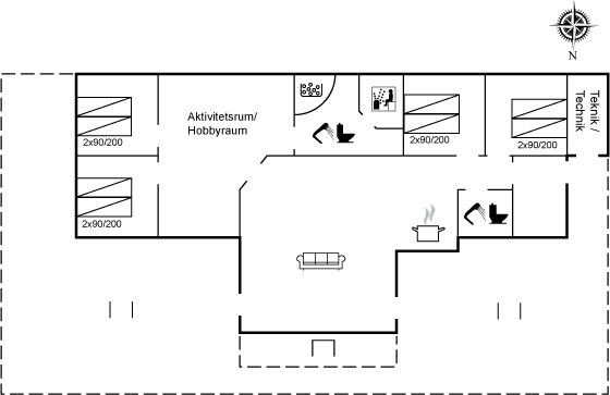 Et flot, nybygget aktivitetshus med en central beliggenhed i Bjerregaard. Her kan man nemt finde hyggen frem samtidig med, at man kan nyde den luksus som kun et nybygget sommerhus kan byde på. Lad børnene tage et spil bordfodbold bag lukkede døre i husets aktivitetsrum samtidig med at I nyder et glas vin i husets flotte opholdsstue - så er der voksen- og børnetid på selv samme tid. Huset ligger nær Vesterhavet og man fornemmer den helt specielle atmosfære, der er ved at bo i et hus nær kysten. Er man til den aktive ferie er der gode muligheder for at vandre eller cykle på naturstien, der snor sig gennem klitterne og sommerhusområderne helt fra Bjerregård til Søndervig.