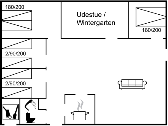 Sommerhuset er tilmeldt "Svøm og Leg", hvilket betyder, at I som gæster har GRATIS adgang til badelande i 5 forskellige svømmehaller samt bowling i Sportium i Varde. Derudover ligger Bork Legeland lige i baghaven - til glæde for børn og barnlige sjæle.