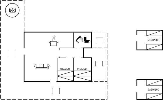 Der er to annekser med soveplads til to personer hver.