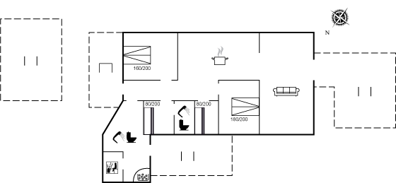 Huset er lyst og hyggeligt indrettet og har god plads, selv til en større familie. Omkring huset er der flere sydvest-vendte terrasser med flot havudsigt, og bag huset er der yderligere terrasse, som er oplagt på blæsende dage.