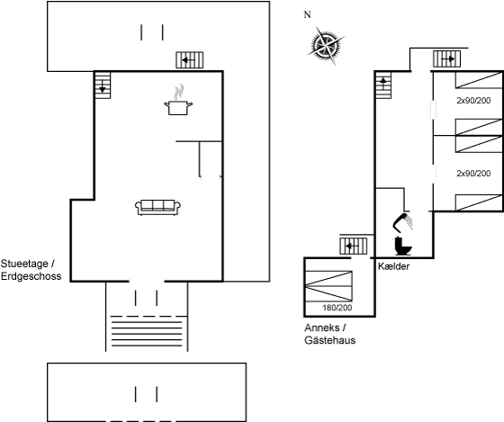 Bemærk, at to af sovepladserne befinder sig i husets anneks.