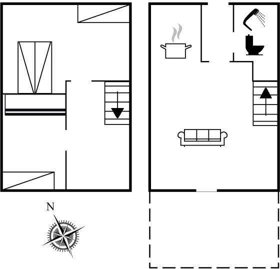 Ferielejligheden er indrettet med en stueetage indeholdende entré, pænt badeværelse, køkken med bl.a. opvaskemaskine, stue med spisekrog samt sofahjørne og TV. Fra stuen er der udgang til den dejlige terrasse. På første sal finder du to soveværelser.