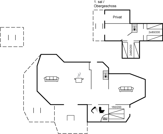 Huset er stort med flere stuer, flot køkkenafdeling og spa-badeværelse samt et større soveværelse med direkte udgang til lille morgenterrasse i stueplan. På 1. sal finder man foruden gæstetoilettet også to soveværelser, en hygge repos og altan, der er delvis overdækket og afskærmet.