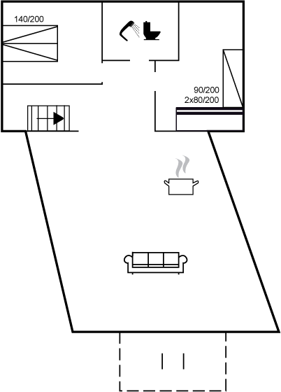 Bemærk: Der er fælles entréindgang med ferieboligen i stueplan. Adgang til vaskemaskine og tørretumbler i fællesrum i kælder.