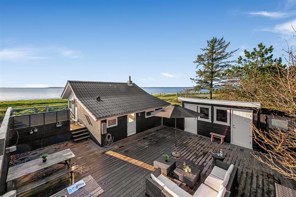 Sommerhuset ligger kun 15 meter fra Ho bugt i et roligt område med strand, skov og sø.