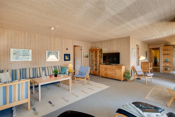 Dette rummelige og hyggeligt indrettede sommerhus ligger på en stor grund med god plads til boldspil...