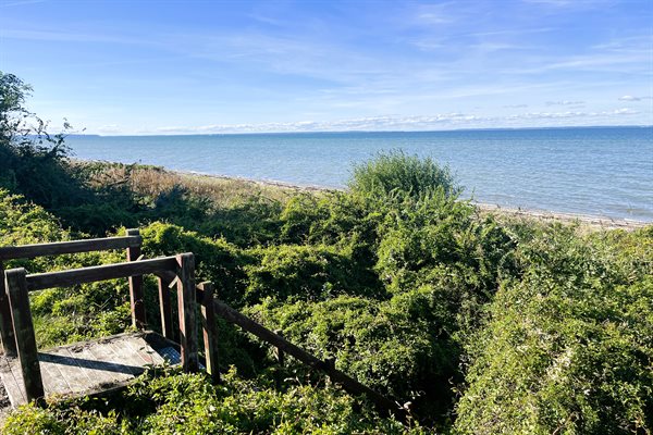 Smagfuldt indrettet ferielejlighed med spa og sauna tæt på naturen og med panoramaudsigt over strand...