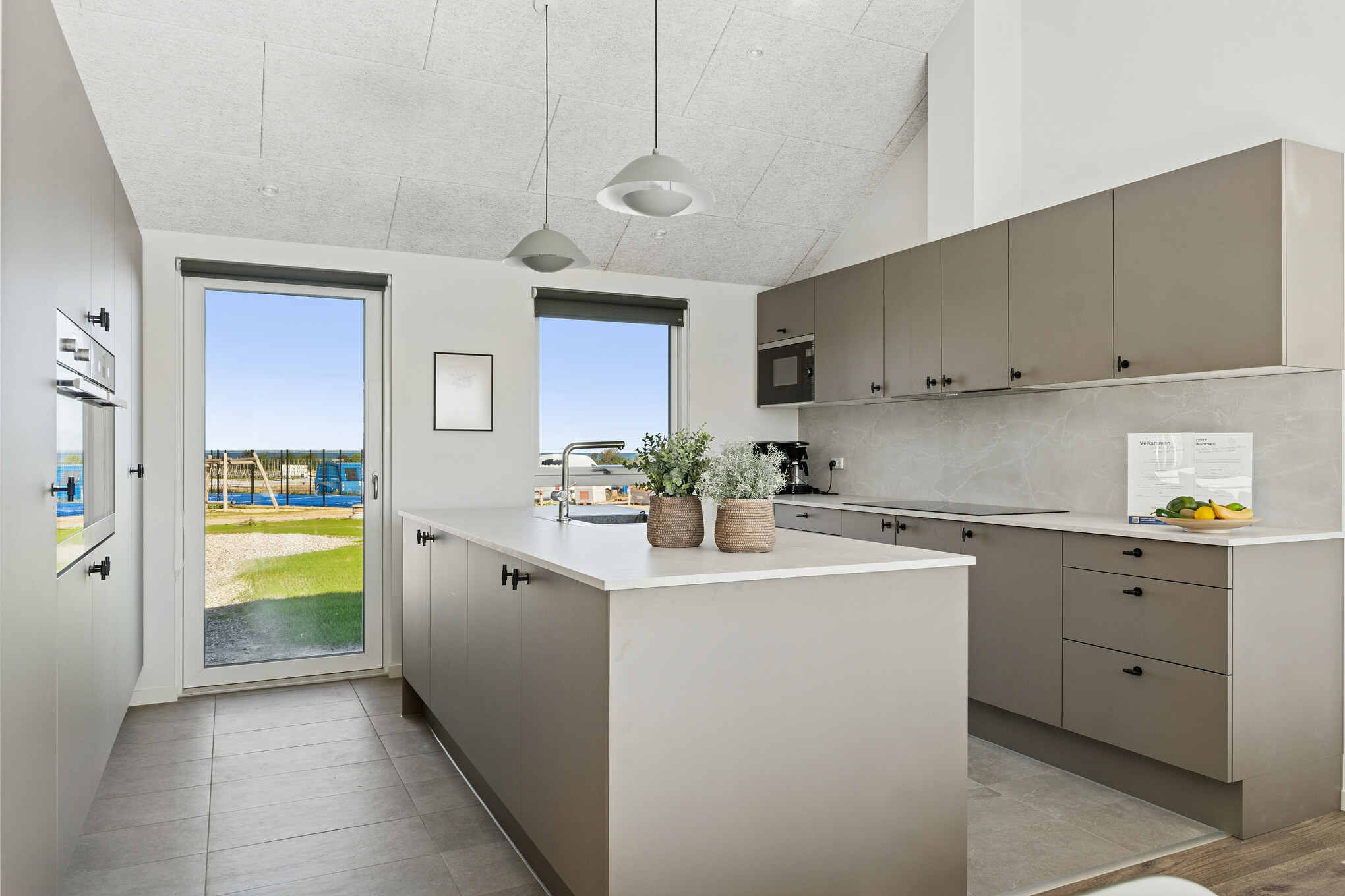 Dette flotte sommerhus, som er bygget i lækre materialer i 2024, er lyst og moderne indrettet.