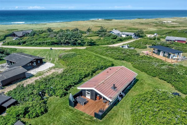 Velholdt sommerhus beliggende på klitgrund, kun 100 m. fra Vesterhavet. På grundens højeste punkt ka...