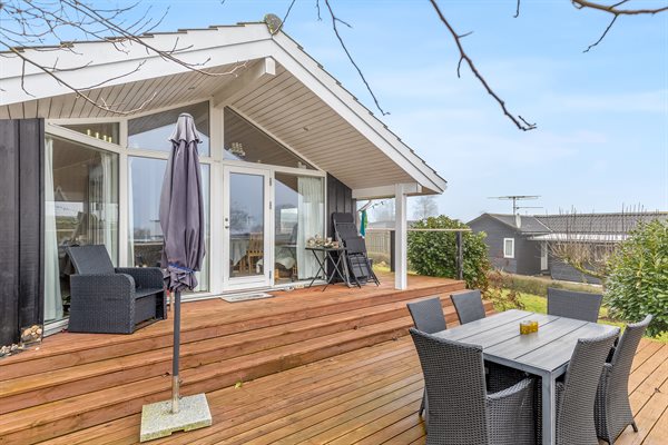 Dejligt sommerhus med stor, indhegnet terrasse og udsigt over Lillebælt beliggende i nærheden af en ...