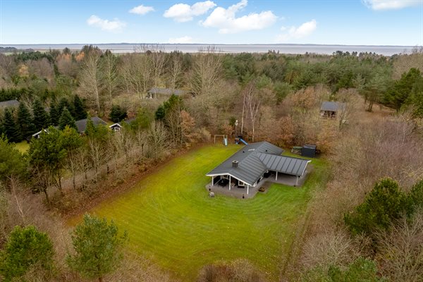 Med udsigt til Limfjorden ligger dette hyggelige feriehus mellem skovens træer. Det er ikke unormalt...