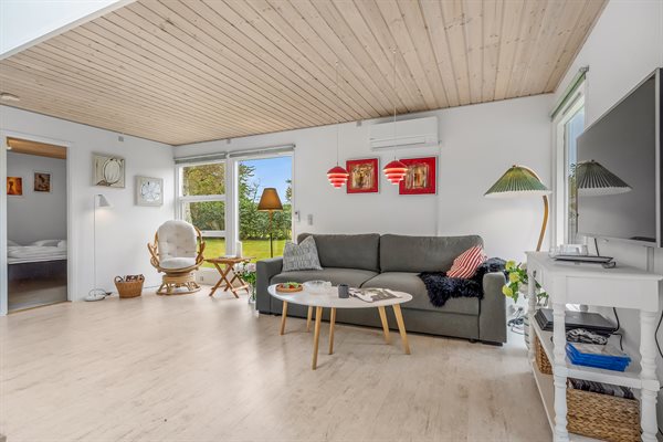Lyst indrettet sommerhus til familier som sætter pris på kvalitet. Der er hems til opbevaring. Køkke...
