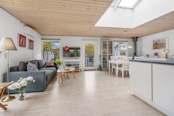 Sommerhus med spabad og lys indretning med åbent køkken. I køkkenet er der mulighed for at lave mad ...
