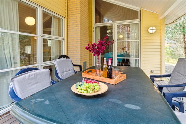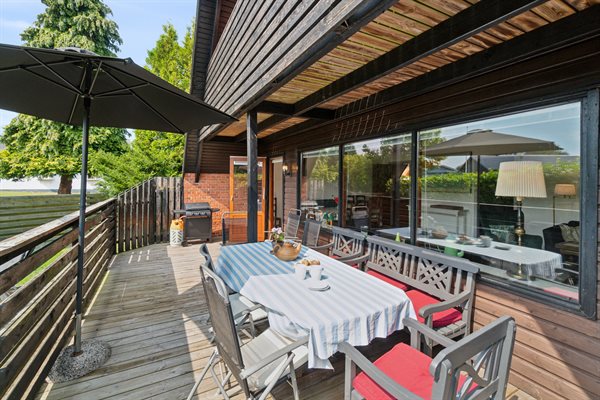Stort sommerhus med skøn træterrasse beliggende helt tæt på den fine sandbadestrand ved Dueodde. Sno...