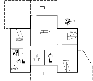 Sommerhuset egner sig til 8 personer samt 1 barn op til 3 år. Der er i alt 3 soveværelser. Sovepladserne fordeler sig på: 4 sovepladser i dobbeltsenge og 2 sovepladser i enkeltsenge. Derudover er der 2 sovepladser på madrasser på husets hyggelige hems som kun er egnet til større børn (4-15 år). Der er 1 stk. barneseng til rådighed. Det er tilladt at medbringe 1 husdyr.