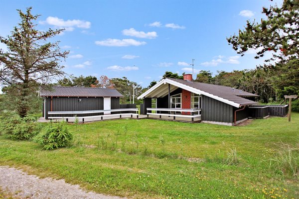 Dejligt og lyst indrettet sommerhus med god plads beliggende på en meget stor og delvis lukket grund med mange træer på halvdelen af grunden. Huset ligger desuden i et roligt og naturskønt område nær Vesterhavet og skøn badestrand samt skovarealer med flere gode vandrestier.