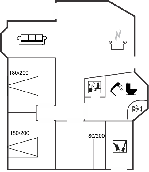 Bemærk: 2 af huset i alt 8 sovepladser befinder sig på en hems.