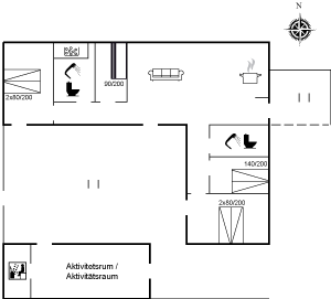 Flot og velbeliggende sommerhus med gode aktivitetsmuligheder nær dejlig badestrand, indkøb og stort aktivitetscenter med badeland, wellness, legeland, restaurant m.m. I det tilhørende anneks findes aktivitetsrum og adgang til sauna.