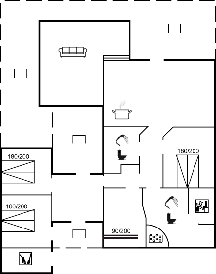 Til huset hører dejlige terrassearealer med gode læmuligheder, og indvendigt er huset indrettet lyst og moderne med opholdsstuen liggende i forskudt plan. Ét soveværelse er med adgang via terrassen.