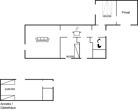 Der er 1 badeværelse med bruseniche samt toilet.