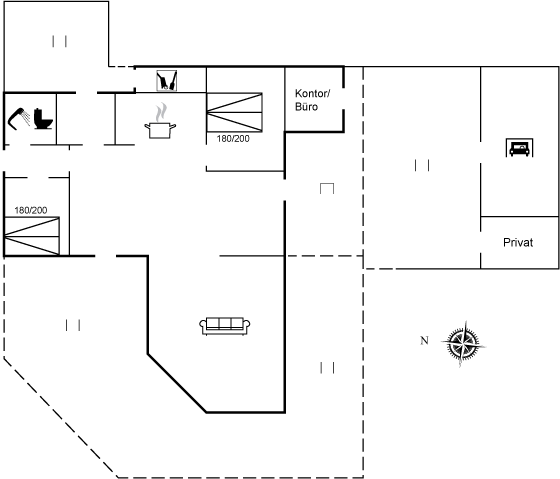 Her er både terrasser mod øst, hvor du kan nyde morgenkaffen og se solen kravle op og kæmpe sig vej om til vest, hvor du så kan se den sænke sig bag klitterne. Du kan også gå en tur op på klitterne og følge solen i seng, inden du selv skynder dig hjem i sofaen og varmer dig ved brændeovnen.