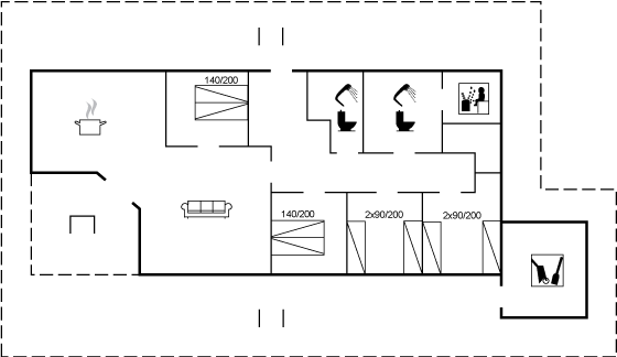 Dette sommerhus har plads til den store familie eller flere familier, der holder ferie sammen. Her kan der både hygges udendørs med grill på den delvist overdækkede terrasse eller indendørs med brændeovn og filmaften eller wellness i spa og sauna.