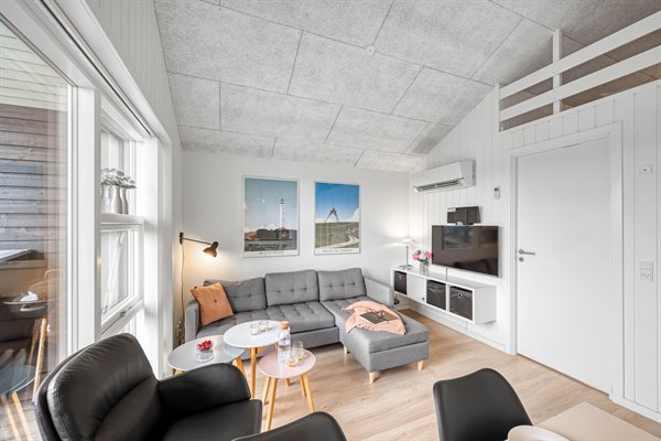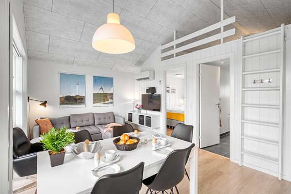 I ferieområdet ved Lalandia finder du denne skønne ferielejlighed, kun 750 meter fra Vesterhavet. Lejligheden har to dejlige terrasser, en mod syd og en mod nordvest, så det er muligt at nyde solen hele dagen.