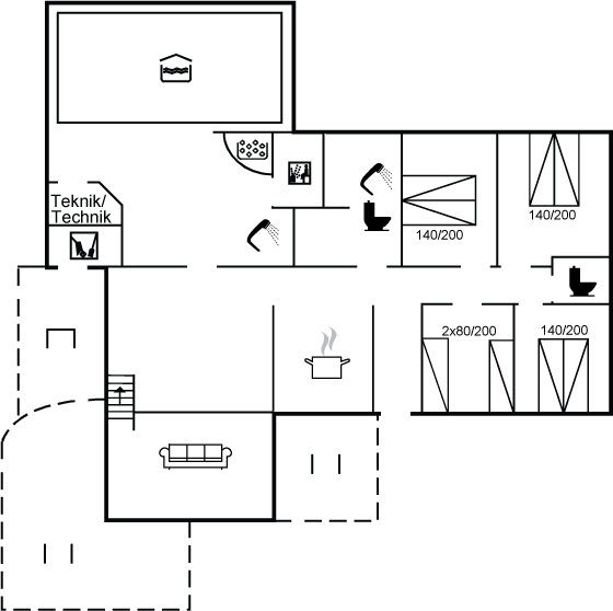 Et sommerhus med swimmingpool, spa og sauna - beliggende på en stor, kuperet naturgrund i et naturskønt område på Lodbjerg Hede. Husets swimmingpool er med salt, hvilket gør vandet meget behageligt. Det varme vand og swimmingpoolen opvarmes af solvarmeanlæg og varmepumpe.