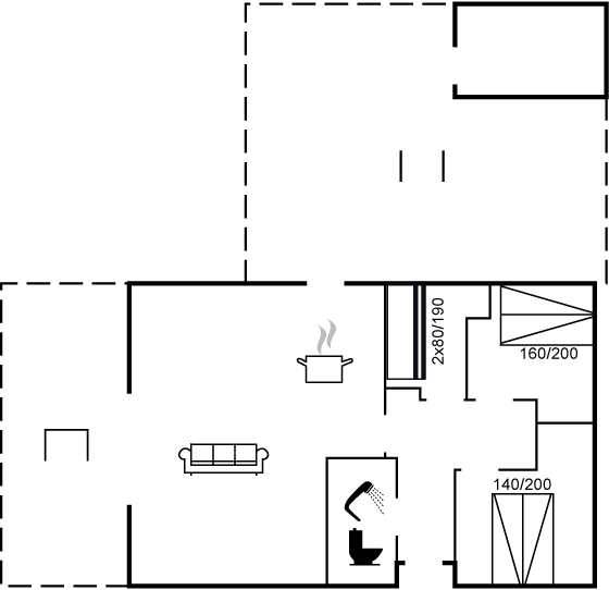 Huset har en gennemtænkt planløsning, der sikrer optimal udnyttelse af hver kvadratmeter. Det åbne køkken-alrum og opholdsområde danner det naturlige samlingspunkt, hvor feriestemningen får lov at blomstre.
