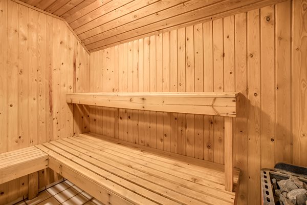 Centralt i sommerhuset er et stort kombineret køkkenalrum og stue, der har store ovenlysvinduer og højt til kip, hvilket gør huset særligt lyst, rummeligt og behageligt at opholde sig i. Stuen har brændeovn, poolbord, fladskærms-TV, og meget mere. I den ene ende af huset finder man det store poolrum med en swimmingpool på 18 m2 m, samt et spabad. Huset har to nye moderne badeværelser med toilet og bruser, hvorfra der fra det ene er adgang til saunaen. I den modsatte ende af huset er der fire soveværelser med dobbeltsenge, samt 2 hemse(soverum 5+6), som begge har 2 sovepladser. I forgangen er der vaskemaskine, tørretumbler og fiskerensebord. Huset har klinkegulve overalt. Der er desuden gratis internet i sommerhuset.