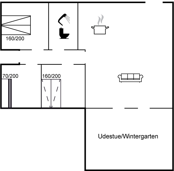 Indenfor kan du slænge dig i den store sofa og slappe af, mens du lytter til brændeovnens knitren, eller du kan rykke ud i den smukt indrettede udestue, hvor det føles som om man sidder midt ude i naturen – her kan du tilbringe skønne stunder både sommer og vinter, da udestuen er udstyret med gulvvarme.