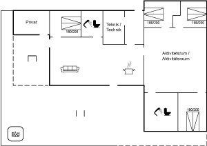 Der er i alt 4 soveværelser. Sovepladserne fordeler sig på 8 sovepladser i dobbeltsenge som er 180x200 cm og 4 sovepladser i enkeltsenge som er 90x200 cm på de 2 store hemse.