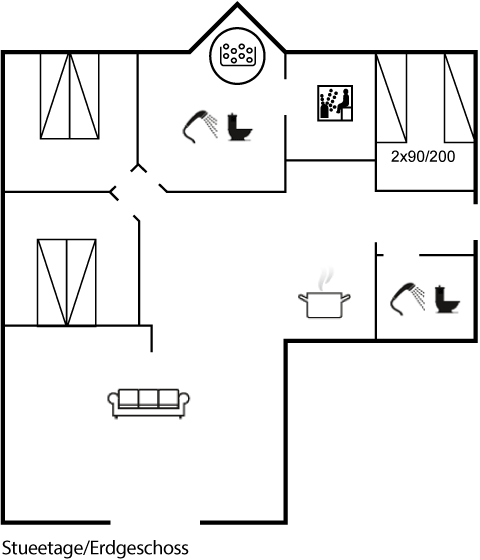 Der er to badeværelser i huset, hvoraf det ene er helt nyt og indbyder til ekstra forkælelse med spa til to personer og direkte adgang til husets sauna – perfekt efter en lang dag ved stranden eller på tur i naturen.