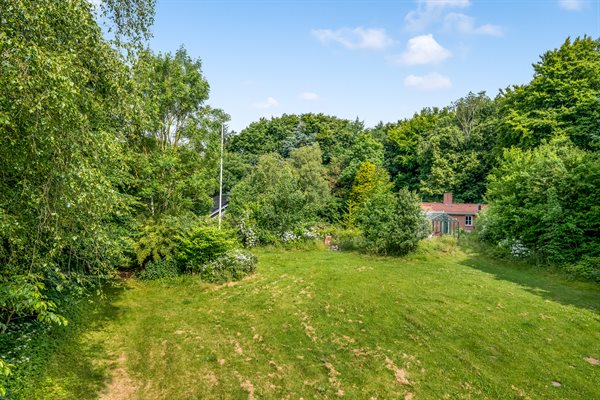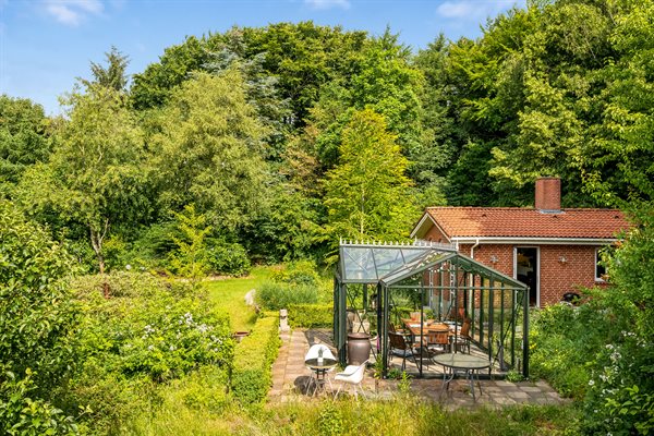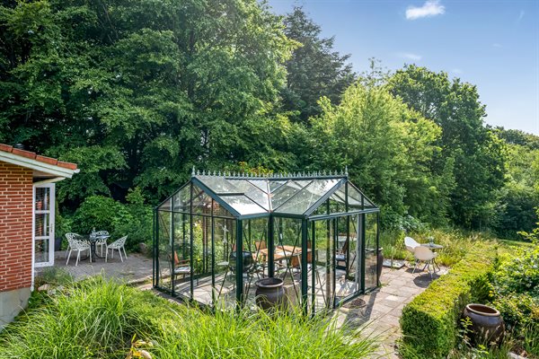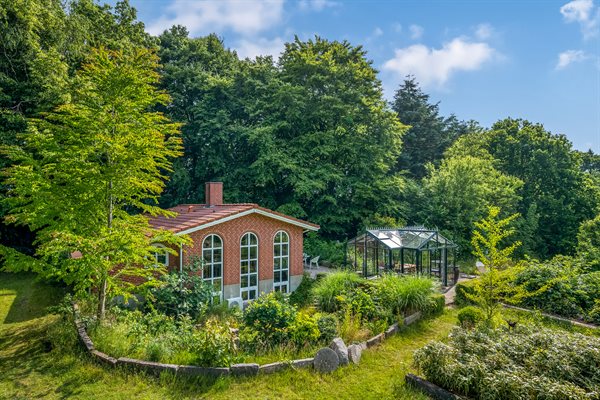 Huset ligger på en 19.000 m2 stor naturgrund, men samtidig tæt op af den lille by Næsbjerg. Her er der fred og ro, samt masser af natur. Der er mulighed for at nyde naturen på terrassen og de omkringliggende områder, og når vejret er knapt så godt, kan man nyde roen og ferien i orangeriet.