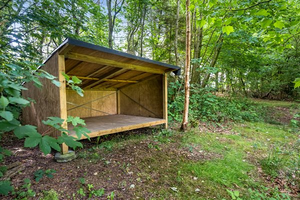 Er man til friluftsliv kan man overnatte i shelteren på grunden, som er placeret nede ved søen, og lave bål ved bålstedet på græsplænen.