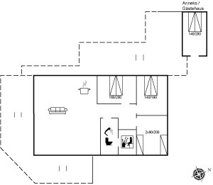 Ferieboligen er på 102 m2. Det er bygget i 1978 og der er gennemført en gennemgribende renovering i 2017, hvor opholdsstuen bl.a. er udbygget. Ferieboligen er beliggende på en 2018 m2 stor naturgrund. Der er 1500 m til havet. Nærmeste forretning er beliggende i en afstand af 300 m. Parkering ved ferieboligen. Der er i alt 3 soveværelser med indbyggede skabe. Sovepladserne fordeler sig på 4 sovepladser i dobbeltsenge og 2 sovepladser i enkeltsenge, hvoraf den ene er med elevation. Køkkenet er bl.a. udstyret med køle/fryseskab, der er induktionskomfur med 4 kogeplader, varmluftovn, mikrobølgeovn og opvaskemaskine. Der er 1 badeværelse med bruseniche. I saunaen er der mulighed for afslapning. I ferieboligen findes der energibesparende varmepumpe, internet, Smart-TV, brændeovn samt vaskemaskine. På grunden er der et shelter samt udendørs bruser til rådighed.