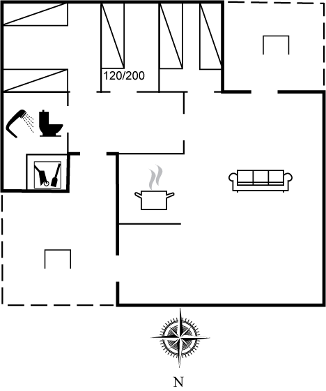 Et hyggeligt og lyst indrettet sommerhus beliggende på en stor grund. Til huset hører 2 overdækkede terrasser. Bemærk: Vaskemaskine og fryser står i udhuset.