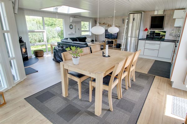 Et rigtig dejligt og velfungerende feriehus med mange moderne bekvemmeligheder. Lyst og meget hyggeligt indrettet med bl.a. renoveret badeværelse, køkken samt rummelige soveværelser med dobbeltsenge. Beliggende på dejlig, rolig naturgrund med rigtig gode og ugenerte terrasseforhold. Huset er ikke egnet til børnefamilier.