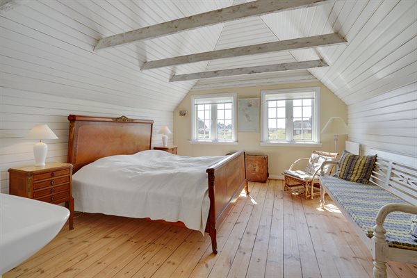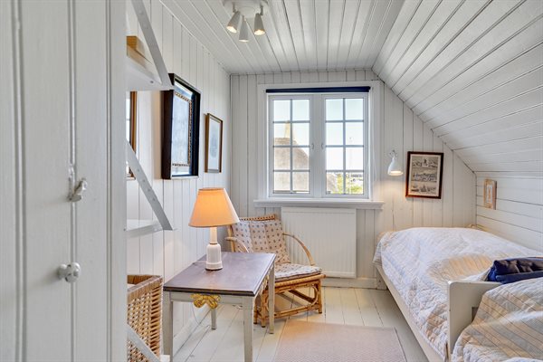 Pragtfuldt og charmerende Fanøhus med 1. sal. Huset er særdeles smagfuldt og hyggeligt indrettet. Skøn beliggenhed på klitgrund, hvorfra der er havkik. Rigtig gode terrasser: Én er delvist overdækket.