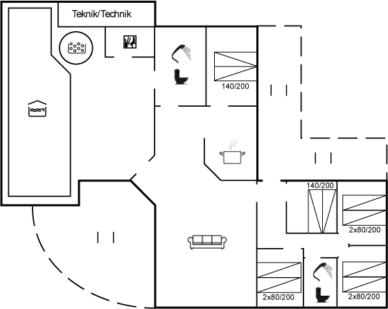 Dette rummelige sommerhus ligger i fredelige omgivelser uden trafik på en meget stor og dejlig grund, hvor der ofte ses rådyr og andet vildt. Huset er velholdt, bliver løbende renoveret, og er indrettet med hyggelig hems, hvor 2 af sovepladserne befinder sig. Desuden stor opholdsstue med vinduesparti mod syd, udsigt over swimmingpoolafdelingen, og med adgang til ugeneret, syd- og vestvendt terrasse.