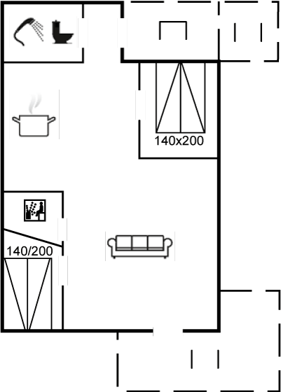 Af yderligere udstyr kan gratis, trådløs internetforbindelse nævnes (computer skal medbringes). Huset har 2 soveværelser, begge med dobbeltseng. Til de små feriegæster findes der høj barnestol.