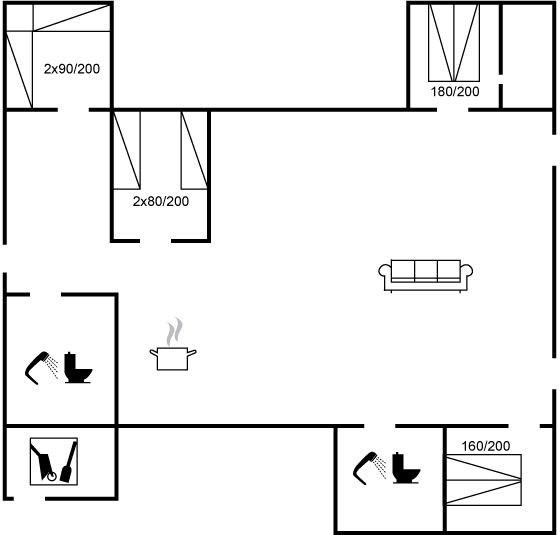 Et rummeligt og smagfuldt indrettet sommerhus beliggende på en naturgrund. Huset er indrettet med åbent køkken-/spiseafdeling, som ligger i direkte forbindelse til stuen, hvorfra der er frit udsyn til haven og den skønne natur. Alle soveværelser er rummelige og indrettet med gode senge.