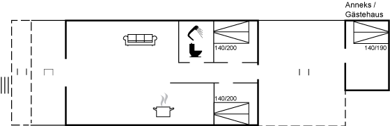 Hyggeligt lille sommerhus beliggende på ugenert grund nær fiskesø. Til huset hører et anneks, hvor 2 af sovepladserne befinder sig.