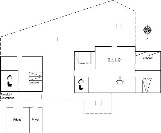 Til huset hører også et anneks, som er indrettet med dobbeltseng og eget badeværelse.