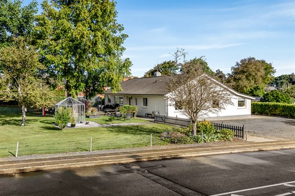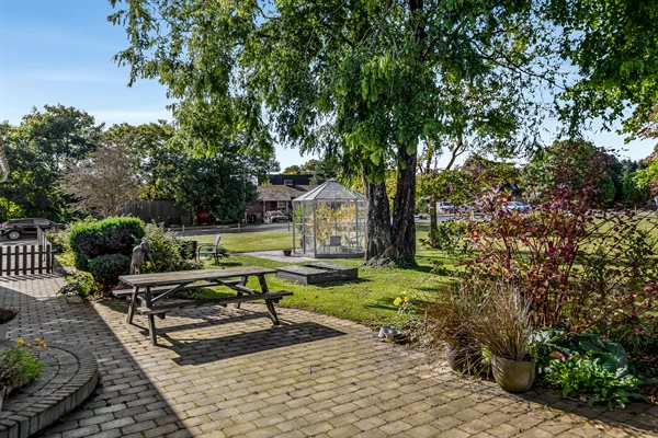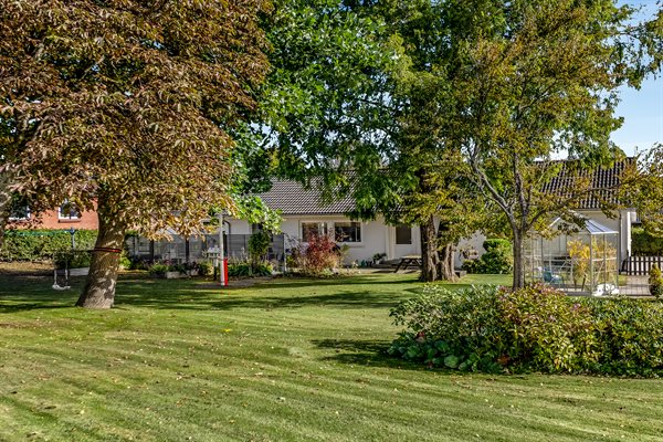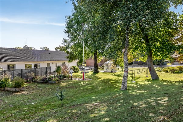 Når vejret er godt, kan du også nyde den store have, hvor der er god plads til hygge og timer i det fri.