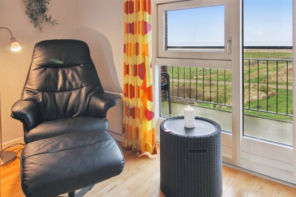 Direkte ved Emmerlev Klev og med udsigt over Vadehavet og marsken ligger denne moderne ferielejlighed i 2 plan, opført i 2005. Lejligheden ligger på en 2000 m2 stor fælles naturgrund. Til lejligheden hører overdækket terrasse.